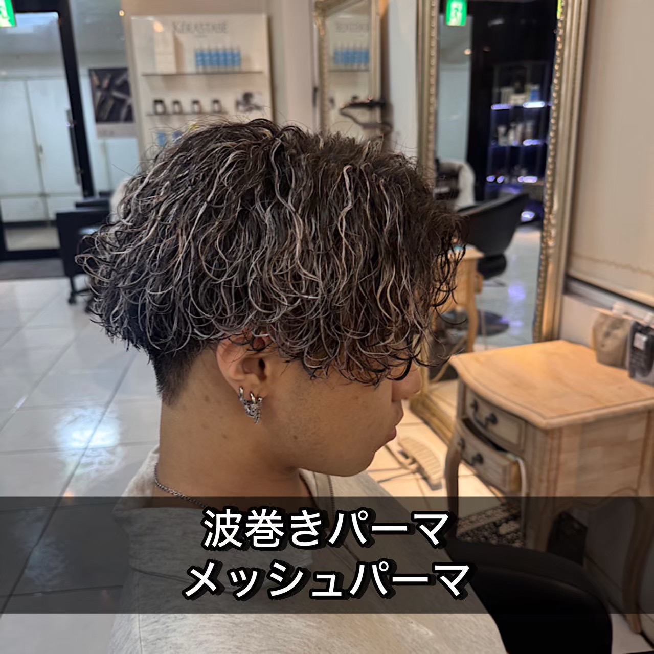 海老名・本厚木エリアで人気No.1を目指すメンズ専門ヘアサロン【AIZU海老名店】。当店はメンズ特化サロンとして、トレンドを押さえたメンズカットから再現性の高いメンズパーマまで幅広く対応し、多くのお客様から高い支持をいただいております。特に「波巻きパーマ×メッシュパーマ」は、今注目の最旬スタイル。立体感と動きを同時に演出でき、無造作なのにしっかりキマるスタイルとして人気急上昇中です。