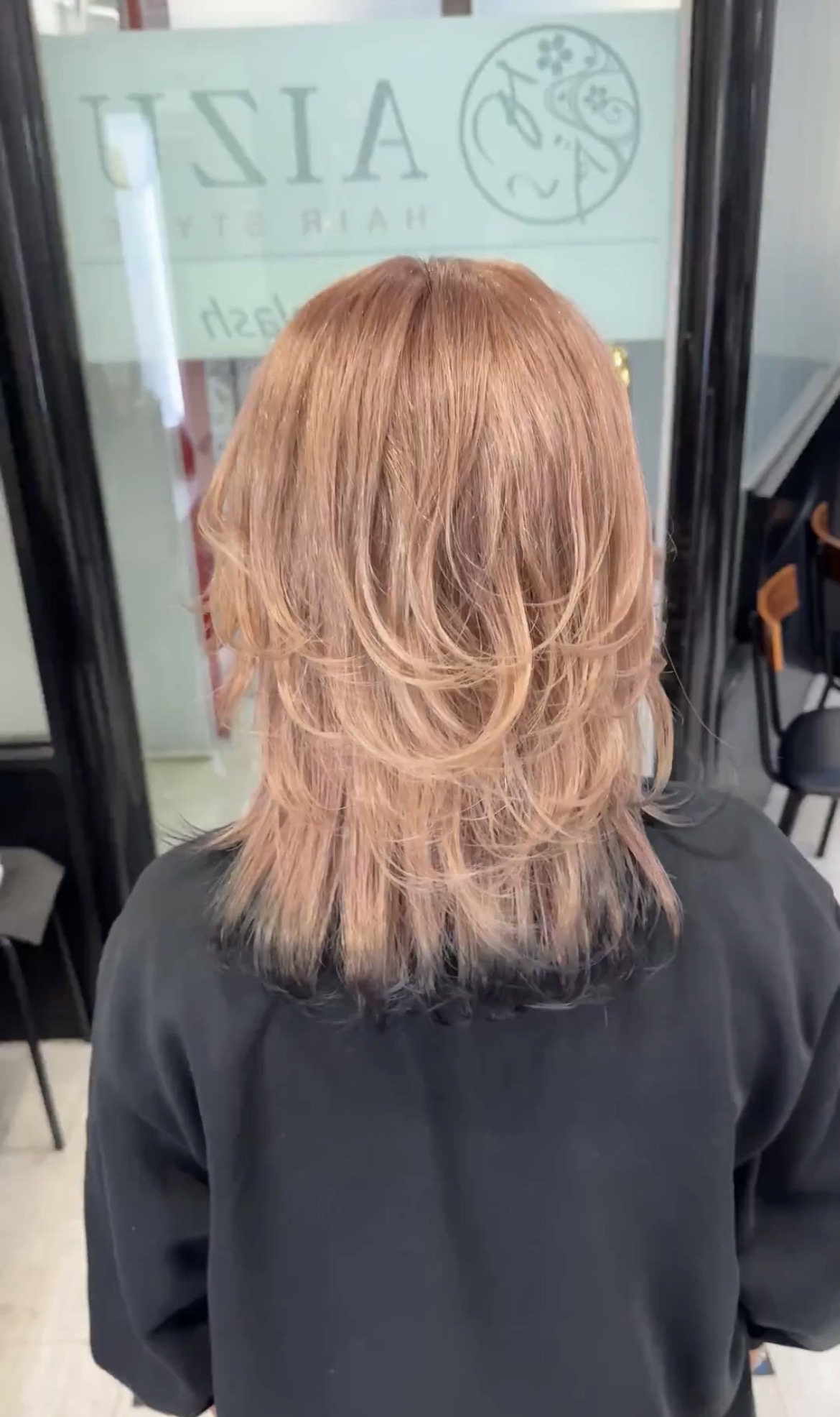 今回ご紹介するのはハイトーンピンクベージュ×エンドカラー×レイヤーカット。ブリーチを使用した透明感たっぷりのピンクベージュは、柔らかさとツヤ感を両立し、肌なじみも抜群。さらに毛先にエンドカラーをプラスすることで立体感と遊び心を演出し、周りと差がつくデザインに仕上げます。