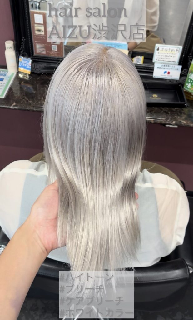 秦野エリアでハイトーンカラー・ダブルカラー・デザインカラーをお探しの方はAIZU渋沢店へ。ブリーチ・ケアブリーチを駆使し、透明感抜群のホワイトシルバー・ホワイトカラー・ホワイトグレーを実現する人気サロンです。