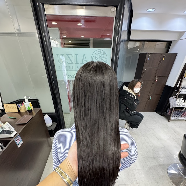 本厚木 海老名エリア人気No.1髪質改善ストレートで艶髪へ AIZU本厚木店 本厚木 海老名エリアでデザインカラーや髪質改善が得意な美容室「AIZU本厚木店 アイズ本厚木店です。 当店では、ダブルカラーやケアブリーチを使ったデザインカラーだけでなく、今人気の髪質改善ストレートのメニューも多くのお客様にご支持いただいています。 「クセや広がりが気になる」「まとまりにくい」「毎朝のアイロンが大変」 そんなお悩みを解決するのが、AIZU本厚木店の髪質改善ストレートです。従来の縮毛矯正とは違い、髪への負担を抑えながら自然な艶と柔らかさのあるストレートヘアに仕上げることができます。 またAIZU本厚木店では、ブリーチやケアブリーチを使ったデザインカラーとの組み合わせも人気です。 ハイライト バレイヤージュ シャドウルーツ ダブルカラー など、トレンドの外国人風カラーや透明感カラーにも対応。ブリーチカラーを楽しみながら、髪質改善ストレートでまとまりのある艶髪を目指すことができます。 さらに、白髪が気になる方には 白髪染め 白髪ぼかしハイライト デザインカラー など、お客様のライフスタイルに合わせたカラー提案も行っています。白髪を活かしたデザインカラーも人気のメニューです。 本厚木 海老名エリアで 髪質改善ストレート ダブルカラー ケアブリーチ ハイライト バレイヤージュ 白髪ぼかし が得意な美容室をお探しの方は、ぜひAIZU本厚木店 アイズ本厚木店へお越しください。 一人ひとりの髪質やお悩みに合わせて、理想のヘアスタイルをご提案いたします。 本厚木で髪質改善ストレートやデザインカラーをご希望の方は、お気軽にご相談ください。